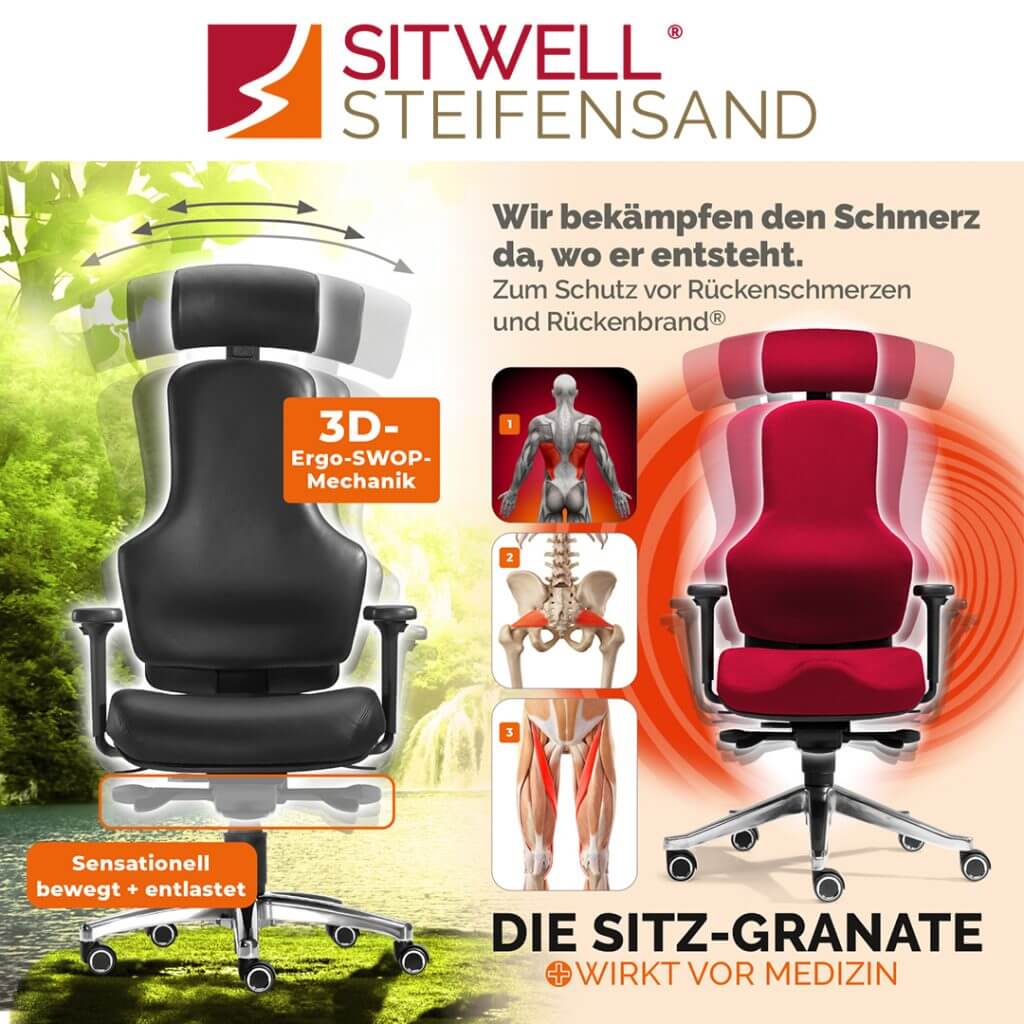 Seit über drei Jahrzehnten widmet sich die SITWELL® STEIFENSAND AG der Entwicklung erstklassiger ergonomischer Sitzlösungen, die Funktionalität mit ansprechendem Design und Beständigkeit vereinen. Ein besonderes Merkmal unserer Premium-Modelle ist die Verwendung exzellenter Werkstoffe – angefangen bei edlem Echtleder bis hin zu luftdurchlässigen Textilien –, wodurch wir höchste Qualität direkt aus Deutschland garantieren.